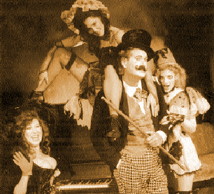 The dance-hall girls also shine when called upon to perform a puppet show depicting Count Dracula's voyage from Transylvania to England. These scenes are the show's more successful attempts at melding two genres into one story. But this "kitchen sink" approach fails in the second act, when horror and pathos are added to the mix. The show could do without "Moonlight Waltz," a schmaltzy love duet sung by Lucy and Quincey Morris (Justin Bloomer), and although Blackton's scenes as Dracula are genuinely terrifying, they're inevitably and annoyingly followed by bits of low comedy. Portions of Dracula are quite tasty, but there's nothing here that you can really sink your teeth into.