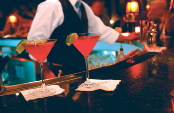 Generous pours of opulent zins, from Rosenblum Richard Sauret Vineyard 2001 and Storrs Central Coast 2000 (both $9) started us off. Getting into the swing of the polished retro surroundings, Jack dove into a jumbo prawn cocktail of Hawaiian Kahuku prawns ($12), while I grazed on a pleasant house salad of tender greens, cucumbers and tiny tomatoes tossed in a vibrant balsamic vinaigrette ($6). "Jumbo is the word," Jack grinned, requiring three bites to dispatch each succulent prawn. The plump shellfish were draped over the edge of a martini glass in a cocktail sauce pumped up with freshly grated horseradish.