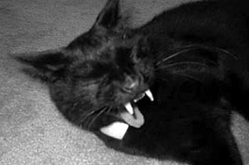 Biter also noticed that our new neighbor has a black cat. Although this wasn't one of the path crossers, this one will have a lifetime of opportunities to do so, right in Biter's front yard. "Here, kitty, here," Biter said crouching down, in a sincere attempt to make friends with this gentle little holdout from past superstition and unreasonable conduct. Naturally, it ran away as fast as its four black legs would go. Biter reflected that possibly black cats have superstitions about white people, too. And after all we've put them through, who could blame them?