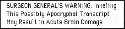 "Which brings me to our new direction at Primo. It's political, it's controversial but most of all it's refreshingly blunt--in a hard-to-pin-down way. In short, it's American. And it's sure to bring provisional nonsmokers into the smoking family--countering that crisis we know as 'The Butt Gap.' Now, I'll ask Miss Southern Tobacco-Growing-States 1995 to raise the curtain behind me and light up, as it were, the future!