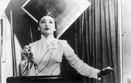 Theremin was a very good-looking man in his youth, and his steely gaze fell on his pupil Clara Rockmore, who is still alive to tell of her days as the fresh-faced star musician in Theremin's tutelage. She's played the instrument for both Leopold Stokowski and Tim Burton (soloing on the Ed Wood soundtrack). In footage of her farewell concert in 1989, Rockmore is a dignified and sad old lady.