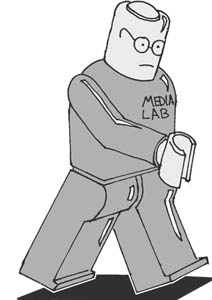 Part of this openness is a result of a new program that brings hundreds of undergraduates to work in the lab. But perhaps the most surprising aspect of the Media Lab's openness is its unique funding model, which has made it perhaps the most overtly industry-driven think tank on the MIT campus. Companies (and, occasionally, government agencies) buy various levels of lab sponsorship, starting at $100,000 per year. These sponsorships give companies the right to use any of the technology in development at the lab for free, which is a pretty sweet deal as long as the demos work and aren't designed to "subvert broadcast media." While it may be a Faustian bargain these Lego freaks have struck, at least they don't hide their funding sources. Nor do they pretend to be anything other than corporate-sponsored. Laboids make demos, not theories. Now only one question remains: What comes after Media Lab culture?