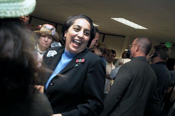 In San Jose City Council District 6--the only close council race of the night--Willow Glen neighborhood activist and candidate Kris Cunningham tried to remain upbeat about early returns that showed her trailing opponent Ken Yeager by a couple of percentage points. Hubby Gary served drinks to guests who were glued to television and computer screens at the couple's Carolyn Avenue home and munching on a colorful spread of sushi and festive wraps. County supe and pal Blanca Alvarado showed up with Sylvia Gallegos, toting a laptop for up-to-the-minute election results. Alvarado said she had counseled Kris earlier in the week after a derogatory gay-bashing letter and cartoon was distributed to area businesses and blamed on a supporter (who says he didn't do it). Cunningham suspected a Machiavellian Yeager backer, who wanted Kris's camp to look homophobic, was the real author and cartoonist. "It's really unfortunate because I think there was a misguided element supporting Ken and ultimately the piece was so demeaning to the gay community," said Cunningham. ... Out at the Lou's Village shindig for the Yeagermeister, Ken supporters dismissed the impact of the strangely crafted, last minute missive, now reportedly under investigation as a hate crime. "I think it didn't hit a wide enough universe of voters," said 30-year-old campaign coordinator and former Yeager student Denelle Fedor, "but it was unfortunate." ... Guests grazed unenthusiastically on garlic bread and broken chips and paid for drinks at a small bar. As the gap widened between 10:30 and 11pm, Fedor and former Yeager student Dustin DeRollo, now an aide to the mayor, began to pace restlessly until DeRollo blurted out almost frantically, "WHERE'S KEN? The candidate had unexpectedly slipped out for a few minutes before his moment of glory, but when he took the podium it became clear why. "Well," the SJSU poly-sci instructor said, as the crowd of 75 held their Heinekens in midair, "I talked to my mother." The crowd twittered. "And I said, 'We won!'" ... The celebratory crowd included The Glen restaurant/bar co-owner John Karamanos, who said his support of Yeager was a payback to Cunningham for leading the neighbors in opposing his Lincoln Avenue bar staying open until 2am instead of midnight. "All her enemies are here," he said bluntly, ticking off their names one by one. "I guarantee you we cost her a couple of thousand votes," the Patio Drive resident continued, modestly adding that he and his wife Stella had mobilized "the whole Greek community."
