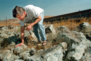 Life on the Edge: Craig Breon, an activist with the Santa Clara Valley Audubon Society, examines an outcropping of serpentine rocks, which create soil conditions that aid in the survival of such endangered species as the bay checkerspot butterfly.