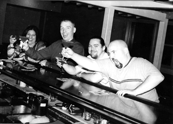 It was still early, and one more target bar needed to be established, so the party decided to jump back on the light rail and head for the always-alive downtown dive the Caravan. Newbauer then got on his cell phone to leave voicemail instructions on GQB's hot line, in order to instruct latecomers where the party was moving to.