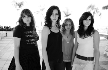 With gate changes and white-courtesy-telephone pages being loudly announced from the overhead speakers at LAX, Castellano is having a hard time carrying on a conversation. Plus, she's tired from only getting three hours sleep the night before and that Egg McMuffin is probably sitting like a rock in her stomach. That's life on the road. The Donnas will definitely have to get used to it in 2005 as they spend the first three months of the year touring New Zealand, Australia and Europe. Then it's back to the States for a lengthy spring trek with Maroon 5.