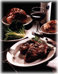 All of this pampering usually comes with a stiff price, but shopping around can unearth some bargains. Good meat without the pampering can be found at some lower-priced places. Now, I know there are good French restaurants around that serve good steaks, but usually in only one or two styles. There is also good steak in a number of Asian places, but those houses don't meet the romance/indulgence criteria. The teppan-cooking show in some Japanese restaurants is more of a reason to go than the meat. Wait a minute ... I see a whole new report ... but never mind for now.
