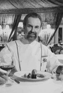 Hubert Keller has been operating Fleur de Lys for over a decade now, and cheffing around the world for quite a bit longer than that; the effect of his coolly masterful touch is an air of comfort and security. He is an exuberant chef of an extremely high caliber, and a pioneer of "lighter" cooking, combining a traditional French emphasis on the flavors of prime ingredients and classic techniques with nonstandard ingredients and combinations (or the lack of standard ones). In what has now become a usual style, he creates healthful dishes by flavoring and thickening them with vegetable purees and broths rather than fats and dairy ingredients.
