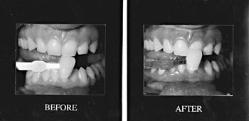 Since neither of the gel-type procedures produced the striking results for which I hoped, I decided it was time to move on to the dental profession's big guns: laser whitening. My third test subject was sent to Dr. Mona Y. Moy's office in the Sunset (415.664.4733) for the "Brite Smile" laser technique. After her mouth was stretched open wide, "like something from Jim Carrey's Mask," Dr. Moy aimed a high-powered laser at her teeth. Every 15 minutes, the dentist repositioned the laser to a different section of her teeth. The one-hour procedure produced "striking" results. Although the laser got pretty hot and the subject was required to sit still for an hour, any unpleasantness was overcome by the friendly and comfortable environment of Dr. Moy's office. Advantages: instant results, no drooling. Disadvantages: must sit in a dentist's chair for over an hour and pay many hundreds of dollars.