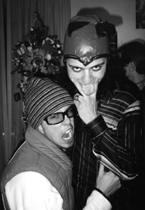 Toward the back of the gallery, partyers worked on a group art project, using hot-glue guns to affix broken toy parts to a globe suspended from the ceiling. The walls of the room were laden with mutant playthings--a plastic chicken McNugget with action figure legs, a My Little Pony with the head of The Lion King's Timba. A closet in the room was marked "Video Confessional." Inside, the penitent could press one button to record their sins on video or another button to go live to the entire party. "I have a problem being fantabulous," confessed Billy, a local club promoter.