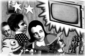 Sunday night, as Janis Joplin once said, is the night of the week when you want a drink most of all. The fact that Sunday night also is when the best show on TV airs makes it natural to get both solaces at once. Watching TV in a bar helps sharpen television's effect as a creator of an artificial community. On the surface, The Simpsons is a parody of sitcoms, complete with the usual lineup: gelded dad, all-knowing mom, demon child. But the imaginary real town of Springfield is the real star, a meta-town in the tradition of Our Town or Winesburg, Ohio. When has a TV show had as many supporting characters?