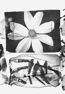 San Francisco artist Lou DiJoseph brings the tradition of the still life roaring into the next century with his recent photographic work. Utilizing Polaroid emulsion transfers on watercolor paper and canvas, his montage pieces center on the loveliness of inanimate objects as varied as fruit, guns and neon signs. The work possesses a willowy and transitory quality with its uneven edges and thin, overlaid images. Neon depicts six or more different views of the same neon sign. DiJoseph assembles them in a vertical composition with overlapping crooked outlines forming one looping composition. The glowing ringlets of glass tubing become splashes of life in the dark night. They evoke the feeling of being on a long road trip and finally seeing a motel on the road ahead. His Fruit Montage shows ripe selections of strawberries, apples and peaches again lined up vertically, but this time DiJoseph adds his own watercolored versions.