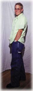 Castro resident Christy "I'm writing a screenplay" Tibal sports a boxy lime green shirt from Nana, baggy Hilfinger jeans, black boots and glasses from Eye Gotcha.