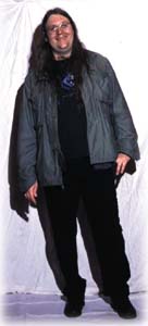 Software tester and musician Tom Dimuzio of Golden Gate Heights hangs outs in a T-shirt from an obscure software company he once worked for underneath an Army surplus jacket he's had for years. Black jeans and Nike Airs complete the look.