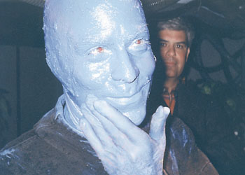 Like Justice Potter Stewart's famous quote about pornography, a Blue Man performance is nearly impossible to describe, but you certainly know one when you see it. Three bald-pated men, painted bluer than a band of Pictish warriors, move about on the stage in an eerie, wordless unison, oddly childlike, banging away at kettledrums while squeezing tubes of paint or stuffing handfuls of Cap'n Crunch cereal into their mouths to create a symphony of chomping.