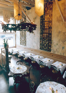 The front dining room reminds me a of a classic tea room. The vegan (no meat, no dairy, no fat added in cooking) dishes never fail to satisfy and often surprise. Try a mango-and-Fuji-apple salad with greens, blood oranges and a citrus vinaigrette; spinach pasta topped with Italian vegetable sausage, with an onion sauce with tomato relish and vegetables; baked pumpkin, filled with a ragout of turnip and fennel, millet quinoa pilaf and garnished with a beet purée. 246 McAllister St; 415/487-9800. Lunch TueFri, dinner TueSun, brunch Sun. $ $$. Beer and wine. MC, T, V. Reservations suggested. (H.H.)