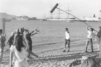 Shoot With a View: Director Steve Liu sets up a scene for his independent feature, "S.F. Walk."