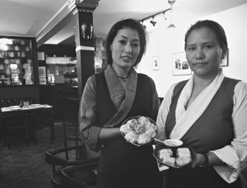Tasty Tibetan Food: Co-owners Tsering Wangmo and Youlo Kelsang of Lhasa Moon, the city's only Tibetan eatery, serve their speciality, steamed dumplings with dipping sauce.