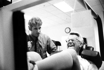 Feeling the Burn: Trainer Hans Roth, left, prompts lifter Jim Price.