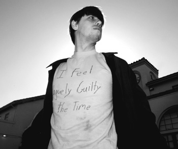 Actor and artist Damian Lanahan-Kalish doesn't dress to impress; he dresses to depress. Or at least that's what his press release says. The slogans on his Sharpie-pen emblazoned T-shirts, however, make for pure sartorial splendor. Every day, for the past three years, Lanahan-Kalish has been graffitiing provocative catchphrases on T's and wearing them in public. His intention is to engage passersby in a dialogue, meaningful or otherwise, thus completing each conceptual art endeavor. "A lot of days I don't really want to deal with it," laughs the affable Lanahan-Kalish, who adds, "I try not to say anything I can't defend."