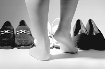 My obsession with shoes is a reminder of where I've been and a dream of where the next pair of black shoes may take me yet. Perhaps this is why I could never settle on those "sensible" shoes my mother stuck my little feet into during grade school. While my friends sported shiny black Mary Janes with paper-thin soles, my feet remained imprisoned in gray, leather numbers that never seemed to wear out. Always hated those shoes; as soon as I could, I started buying sexy, impractical ones.