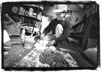 Icky art: Meg Hitchcock glues together one of her unusual candy works.
