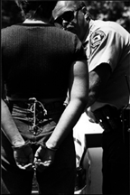 Several weeks ago, McKay had stopped Beth during one the first sweeps. He chose not to arrest her, but did issue a stern warning that she is "persona non grata and should get off my avenue." Beth decided to move her action just inside the Santa Rosa city limits, thinking she was immune to arrest by the Sheriff's Department. Wrong.