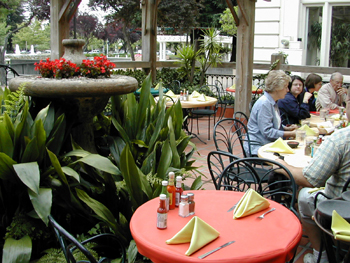 wine at its prime sidewalk-seating location. There's also a garden patio
