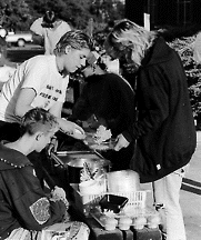 The young, spiky-haired idealists from the anti-poverty group Food Not Bombs showed up at 5 p.m. and again at 7 a.m. with a load of vegetarian dishes to nourish the throng. Familiar Sonoma County activist Mary Moore used the occasion to lecture the campers about genocide and nefarious U.S. government deeds in the Third World.