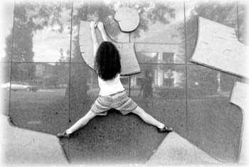 Buildering isn't exactly my cup of tea. I don't like going very far off the ground without a rope, the landings usually are bone-jarring cement, and it's dirty. I'd never worn car exhaust until climbing urban structures. But when I moved here three years ago, one of the first things I noticed was the relief sculpture on the monolithic AT&T building on Third Street in Santa Rosa. The second eye-catcher was the "Lost Autumn" granite sculpture on the south end of Santa Rosa Plaza.