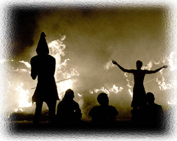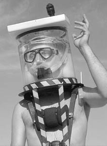 However you get your pancakes, Burning Man organizers are adamant on one point: no spectating. It bothered me mightily that first year. No matter how deftly I handed out change, I couldn't delude myself that serving coffee was art. Then I saw my chance to break through the veil, a traveling bar that drew photographers like flies to a porta-potty. Clueless voyeurs were grabbed by a dominatrix and brought to face the tipsy tribunal. "SING, DANCE, OR DROP YOUR PANTS!" they roared. Hoping to avoid the humiliating prologue, I walked up to the hostess in leatherette and offered to sing "Happy Birthday to You" in Russian. In return I got a paper cup of vodka and cranberry juice and some weak applause. Didn't matter. I had officially, through a megaphone, participated.