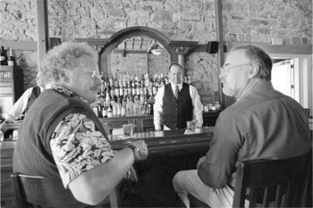 Bloody mayhem: Two customers wet their whistles in front of the well-stocked bar at Cole's Chop House, which offers meals heavy on the seared flesh and light on the veggies--plus a lethal array of classic cocktails.
