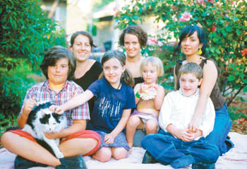 Women and Children First!: Mama Collective and kids, from left to right: Adler Blaze, Lila Cugini, Xenia Burlison-Craft, Dani Burlison-Craft, Ava Burlison, Terrie Samundra-Girdner, Ceili Samundra-Carr.