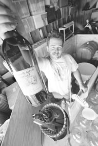 Space is another troubling issue. Bennett has a three-car garage and a custom-built wine room on his Windsor ranchette. But many winemakers are in Anderson's shoes, with a garage that has to hold both the wine and the washing machine. "A winery has space to leave stuff aging," says Anderson, looking around at the crowded space. "Like at Jordan [where Anderson is a maintenance worker], they age things in the barrel two years and then age it in the bottle for another two years. I just don't have the space for that."