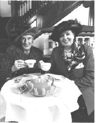 High on Leaf: Sonoma County Museum volunteers Marion Schuessler and Dana May Casperson celebrate holiday high tea.
