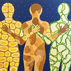 It's not a bird. It's not a plane. And it's definitely not Superman. But on the right side of Enrique Chagoya's canvas, you can make out part of the Man of Steel's familiar logo. SUPER is spelled out in the familiar block lettering but the word is reversed (REPUS) and falling off the chest of a Frankenstein-like figure. The face doesn't belong to Kal-El, the comic-book alien sent to Earth from Krypton. It's a jumble of seven or eight faces collaged together. Supergirl's cape is flying freely behind her back but the logo covers her face and upper torso. Superman himself does make an appearance. He's flying straight into the "S" but you can only catch a glimpse of one full leg and both of his red ankle boots as they disappear upwards. » Read More