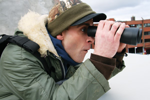 (Canada: 83 min.) Seth W. Owen's vision of a cluster of Montreal voyeurs is well worked out, even if the premise has the dead-end quality of an academic joke. Steve (Joe Cobden) is the lynchpin of a group of roof crawlers who meet in all sorts of weather; their dedicated window peeping is disturbed by a college professor (Janine Thériault, very good) who has come to study them. But her own clear shot at the Hassenpfeffer Fellowship is disturbed when her interest grows: not in destroying sexist paradigms of the watcher and the watched but in the lowbrow pastime of catching glimpses of dicks, balls and girls with big nipples. To the film theorist, all moviegoers are voyeurs; naturally, Peepers cites Rear Window and Peeping Tom (aside from a Scrabble board, is there any other use for the word "scopophilia" than to describe that Michael Powell movie?). One gets a "where was Brian de Palma when they needed him" vibe when watching this. To the rescue: the skin scenes and Montreal's sturdy tradition of improv comedy, evinced by the sweet Quinn O'Neill as a girl who turned exhibitionist (a turn-off to these peepers); and Daniel Perlmutter and Mark Slutsky as the obnoxious rivals who are caddish enough to sell what they've watched on their website. (RvB)