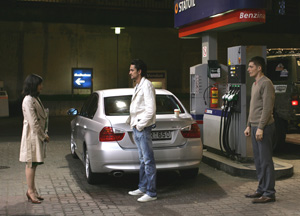 (Lithuania, Germany; 92 min.) Antonioni goes to Vilnius. Laura and Tadas are a disaffected young urban, professional couple, stuck in a lousy half-built flat thrown up during the last economic boom in a district called "The Box" for its stunning architectural brutality. The couple—numb from the ugliness around them—go their separate ways for the course of a night: the wedge is the husband's old pal from school, Linas, who turns up like a bad penny. He takes Tadas out for a drive to nowhere on the freeways of the city. Despite what you've heard about the charms of Lithuania's capital, you just about won't see a building more than 10 years old in this movie, and aside from a turn in a scary forest, the only natural thing you'll see is the grass in the median strips. The landscape is thoroughly Americanized in the night-lighted gas stations and aimless rituals: Radas and Linas even go in for an automobile sideshow, burning some of the rubber on Tadas' Mercedes. Identity games ahoy, with the Mimi Rogers–like Laura turning up tarted up with lipstick and spinning out in a fancy ride of her own. Clearly, a wakeup call to the Baltic States. (RvB)