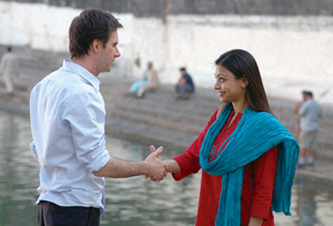 (2006) Welcome back to this good-natured, open-minded film on an unlikely subject; it won the Cinequest voting for all-time favorite festival entry. Hapless Seattleite Todd Anderson (Josh Hamilton) works for a company that sells Stars and Stripes–covered gewgaws to our born-again patriots. His boss orders him to India to open a call center. The "O" in Todd's name is mispronounced from his arrival in the subcontinent. Now known as "Mr. Toad," Todd receives a wild ride to the site of the call center: a half-finished pile of cinderblocks surrounded by lounging cows. He quickly picks an assistant, Asha, played by Ayesha Dharker, who was Queen Jamillia in Star Wars: Episode II, since she is flesh and blood, George Lucas hardly noticed her there—far less did he note Dharker's smile, so lush and so wide that it seems to unfold in sections. Hamilton's affable, lightweight performance is just right. Director John Jeffcoat and co-writer George Wing's aims are modest. Outsourced has the pleasure of a travelog: the things that make this movie shine are humble commonplace events. It's clear that only people who met India halfway could have made this movie. (RvB)